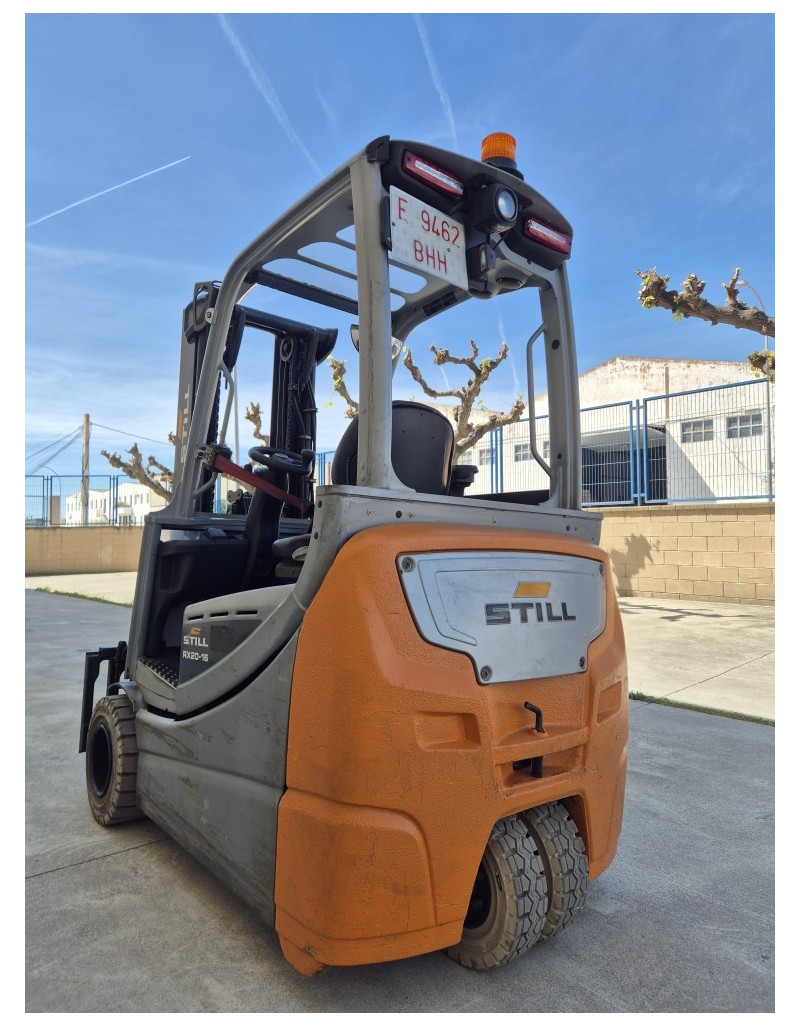 STILL RX 20 de ocasión, Máquina matriculada y equipado con triplex, desplazador lateral y tejadillo drive in para trabajar en estantería compacta.