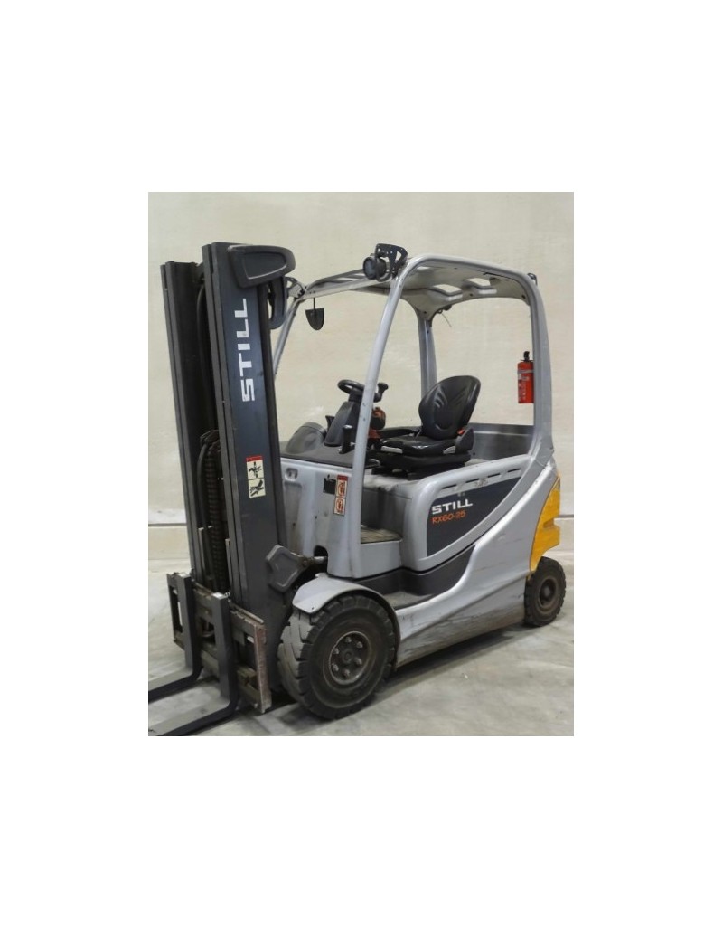 STILL RX 60-25 de ocasión equipada con mástil triplex contenedor, batería del muy buena del 2022 y con desplazador lateral.